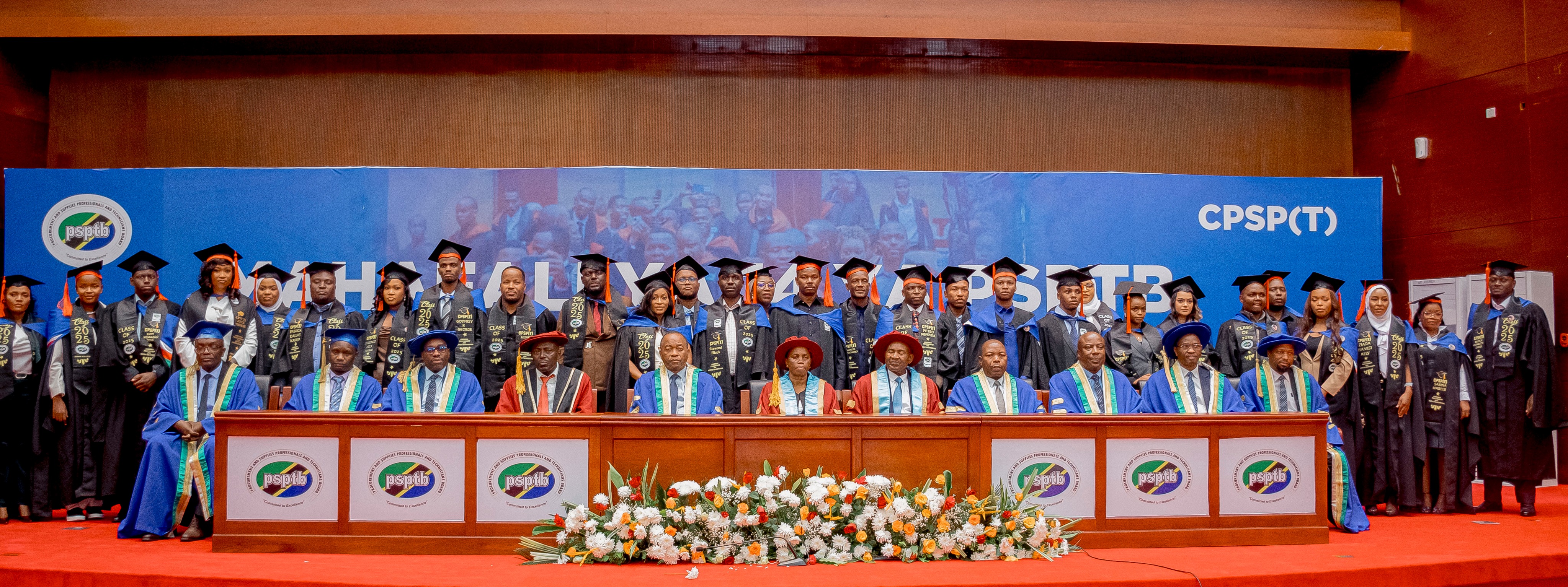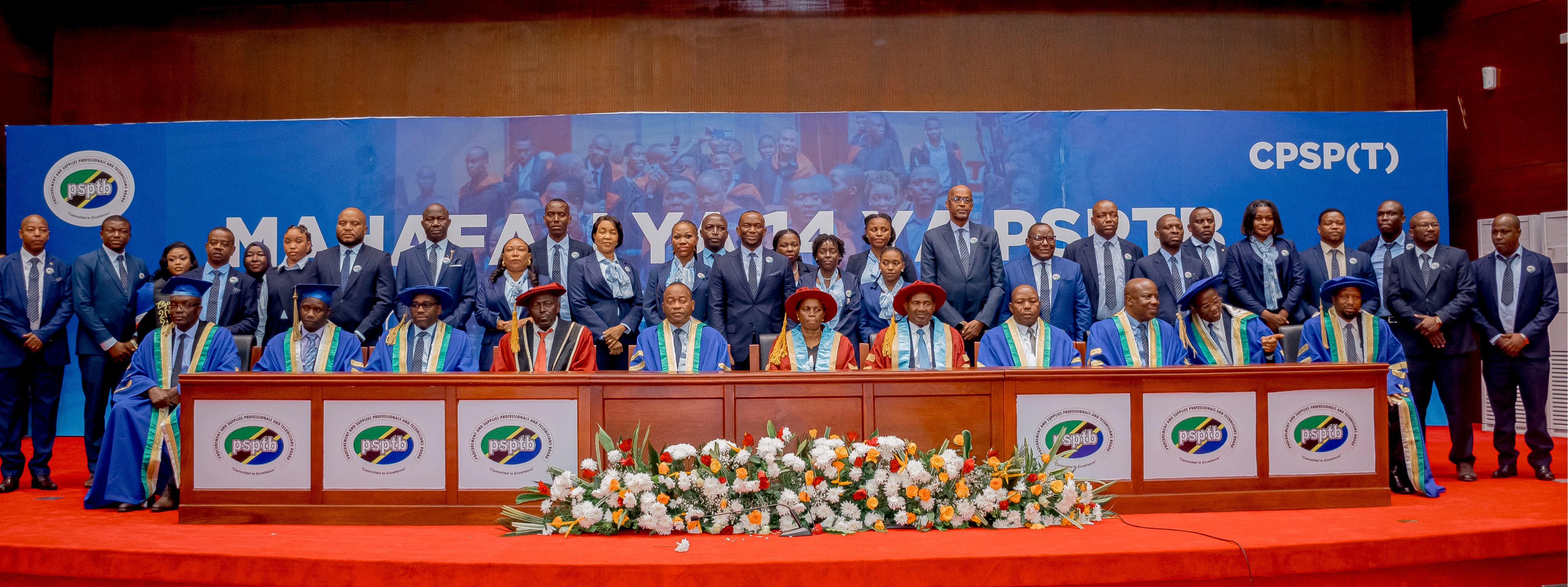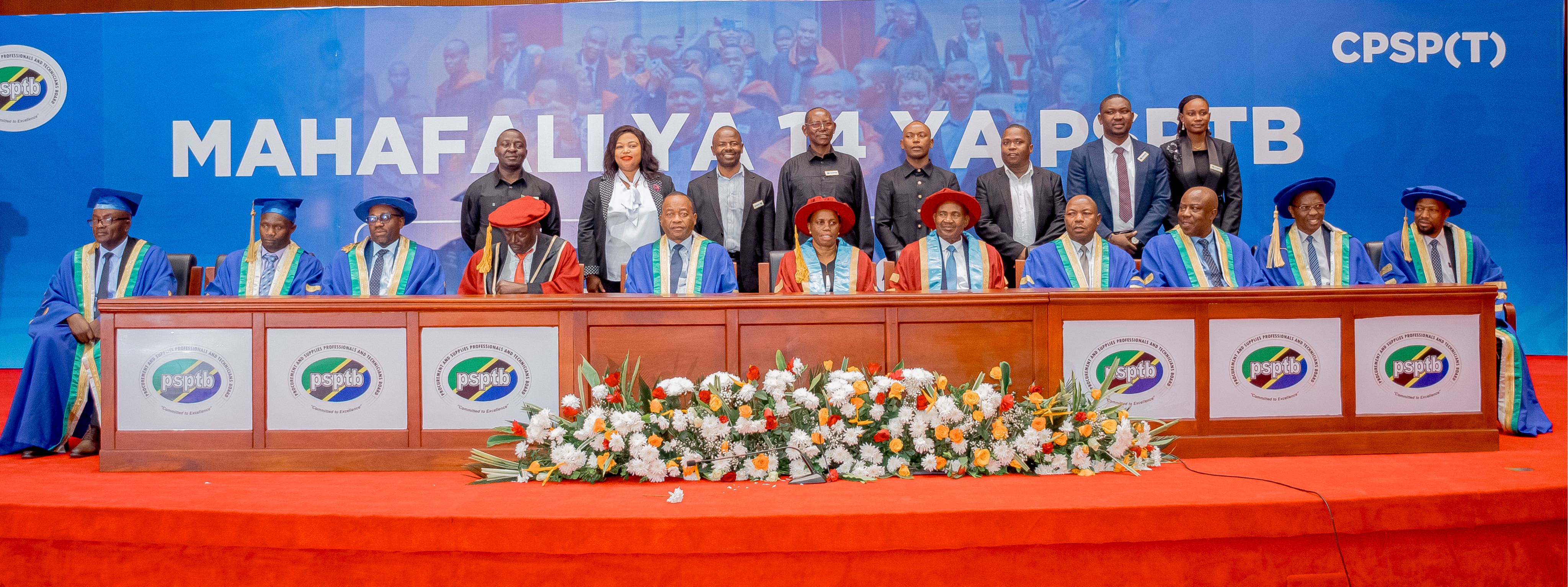Wahitimu wa mitihani ya PSPTB wakiwa katika picha ya pamoja na meza kuu katika mahafali ya 14 ya mitihani ya PSPTB yaliy...