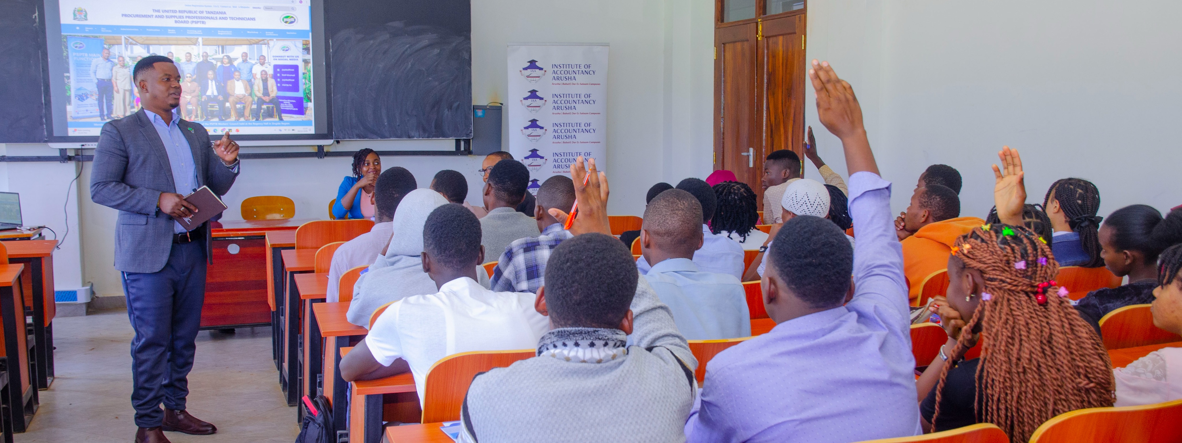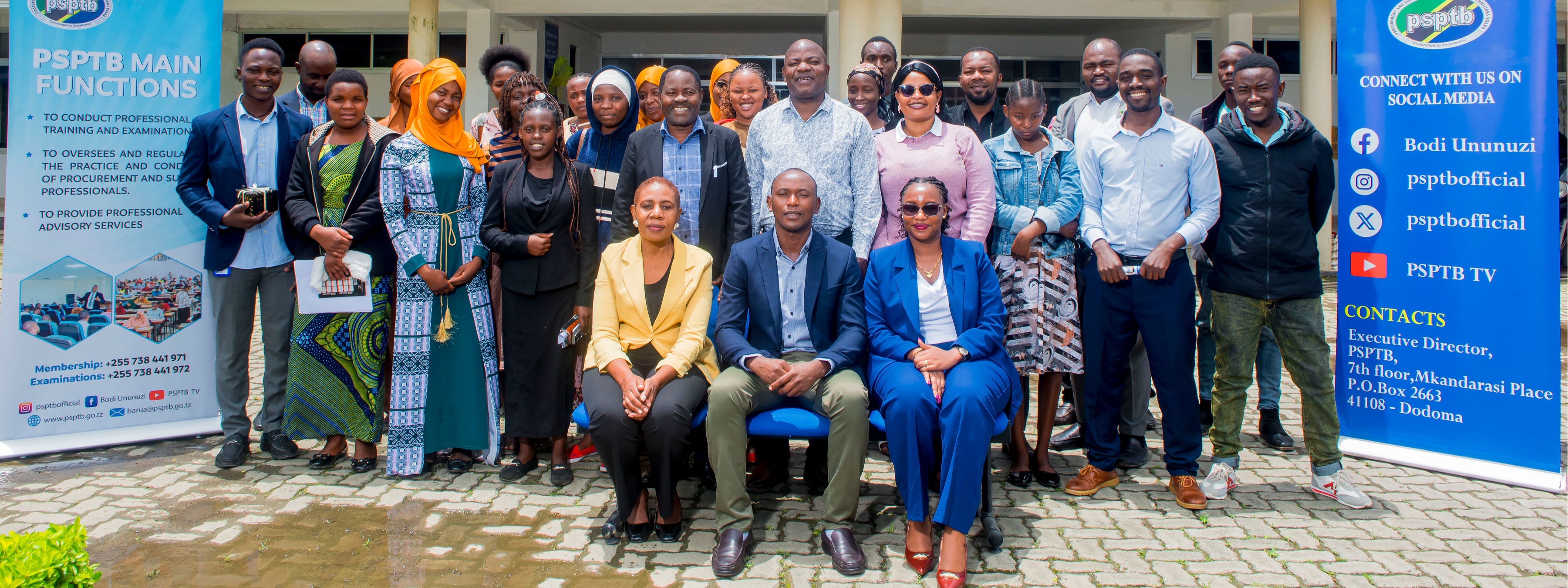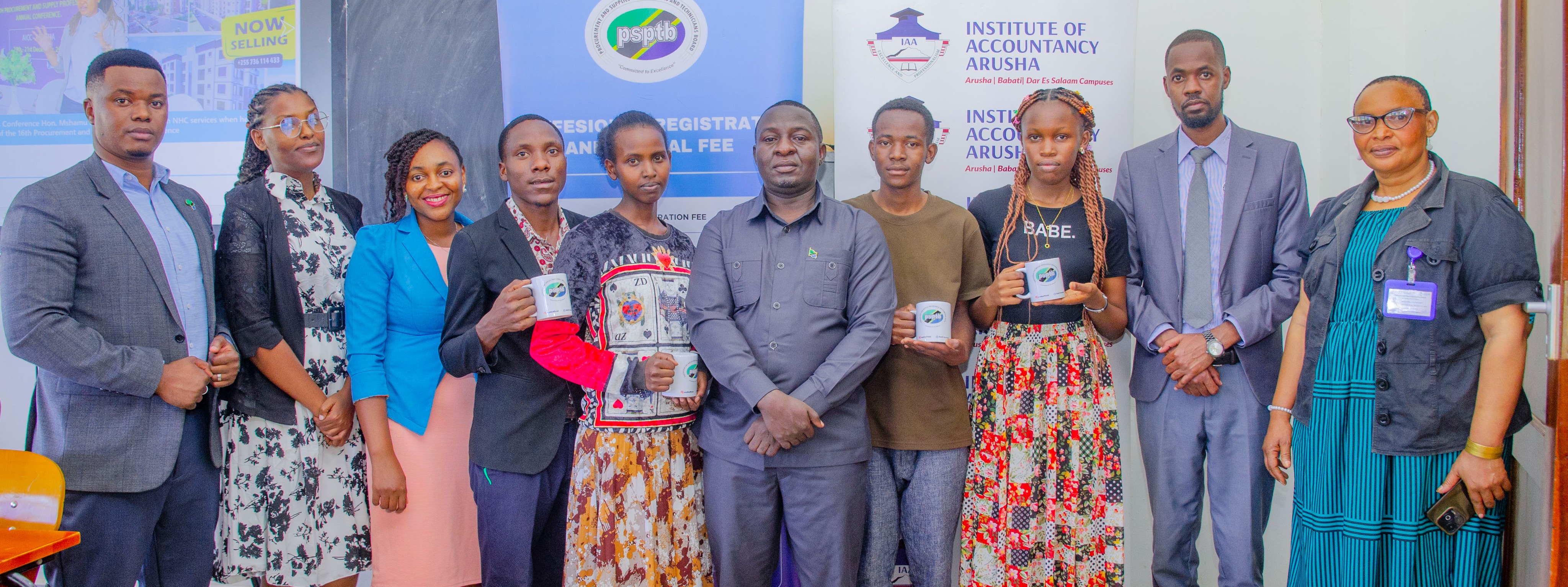 Maafisa kutoka PSPTB kwenye picha ya pamoja na baadhi ya wanafunzi wa taaluma ya Ununuzi na Ugavi kutoka Chuo Kikuu cha...