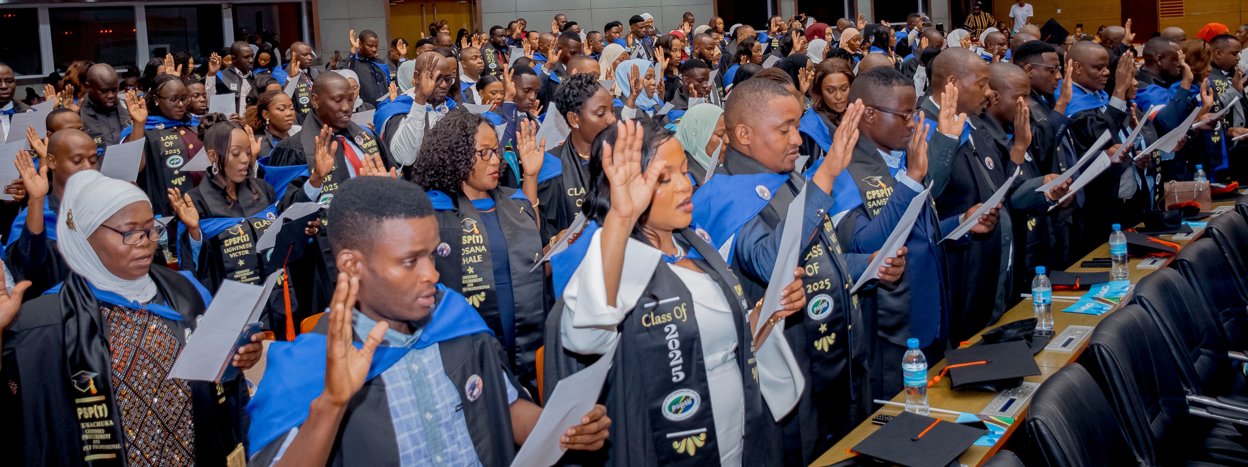 Wahitimu wa mitihani ya PSPTB wakiapa mbele ya mgeni rasmi wakati wa mahafali ya 14 ya mitihani hiyo yaliyofanyika katik...