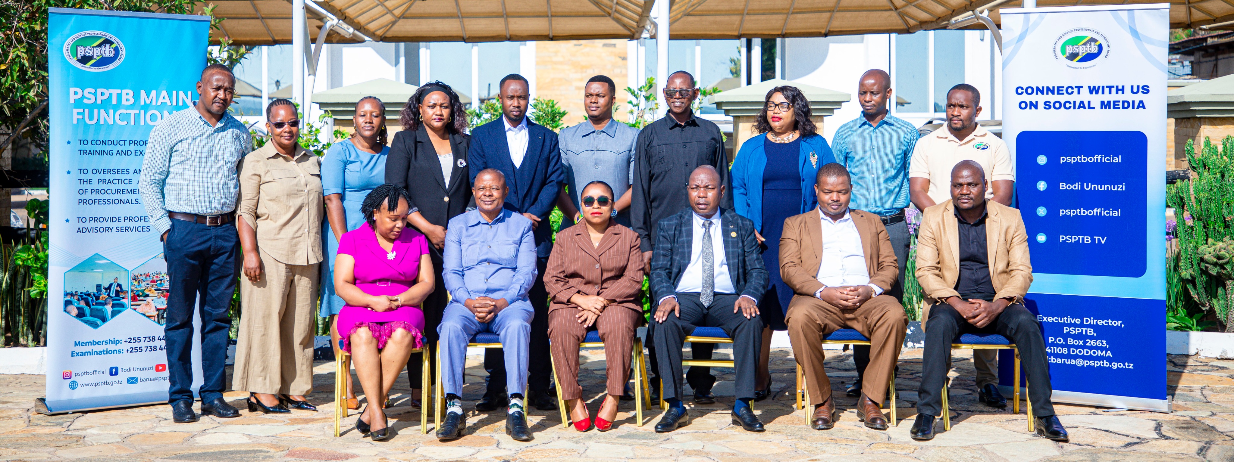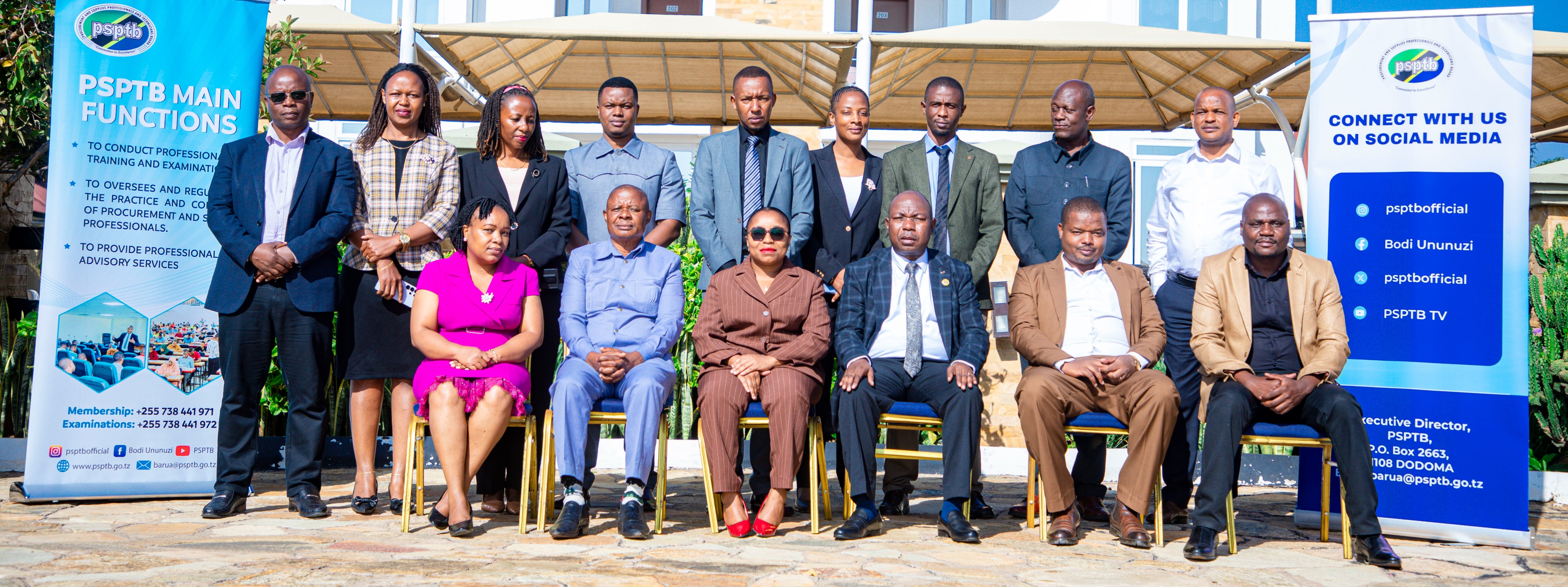 Watumishi wa PSPTB wakiwa katika picha ya pamoja na meza kuu wakati wa ufunguzi wa Baraza la Wafanyakazi la PSPTB lilil...